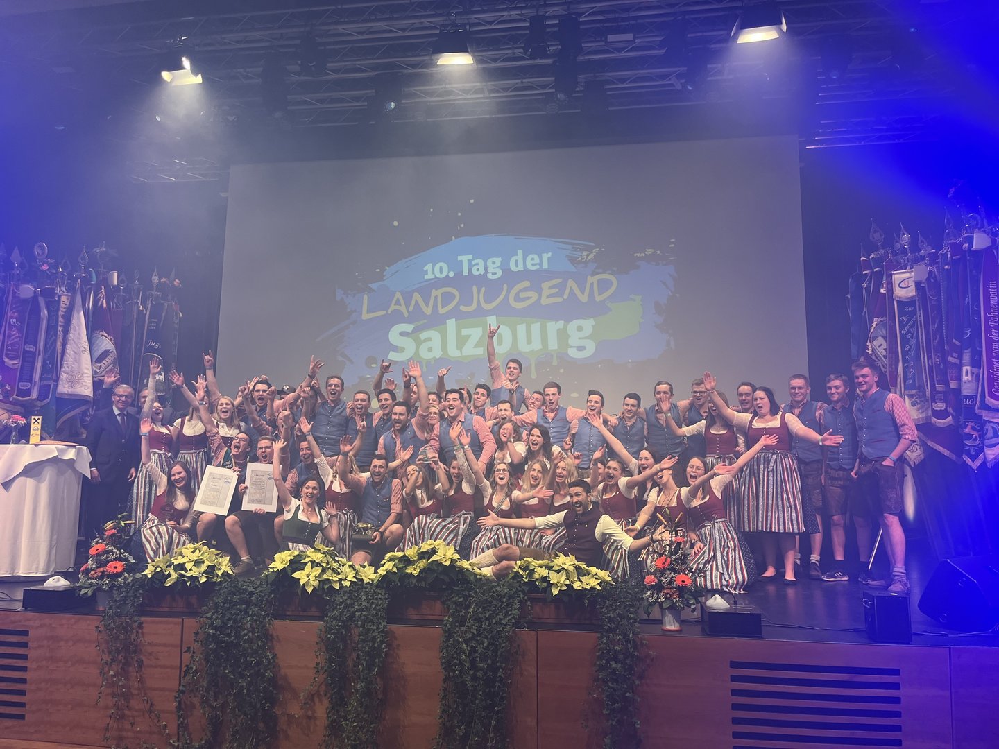 Nachdem der Fahneneinzug zu Beginn den ersten Gänsehautmoment prägte, ging es Schlag auf Schlag. Wir durften uns über zweifache Goldprämierung unserer beiden Projekte, zum einen JUMP-Projekt „Brotliab“ von Anna Bachler und zum anderen unser Jahresprojekt „Gedenken, erholen und danken – mit der Landjugend Kraft tanken“, freuen. Zusätzlich wurde Claudia Bann mit dem goldenen Leistungsabzeichen und Elisabeth Schilcher noch einmal zum Bundessieg im Sensenmähen geehrt. Kurz vor 21:00 Uhr war es dann so weit: Unter Landeshauptmann Wilfried Haslauer wurde die aktivste Landjugend Salzburgs bekannt gegeben. Zum zweiten Mal ging der goldene Stier an die Landjugend Köstendorf. Dankbar und stolz zugleich ließen wir den Abend in Zell am See noch gemeinsam ausklingen. Ganz groß wurde dabei unser einmaliger Zusammenhalt geschrieben, den wir so schnell nicht vergessen werden.